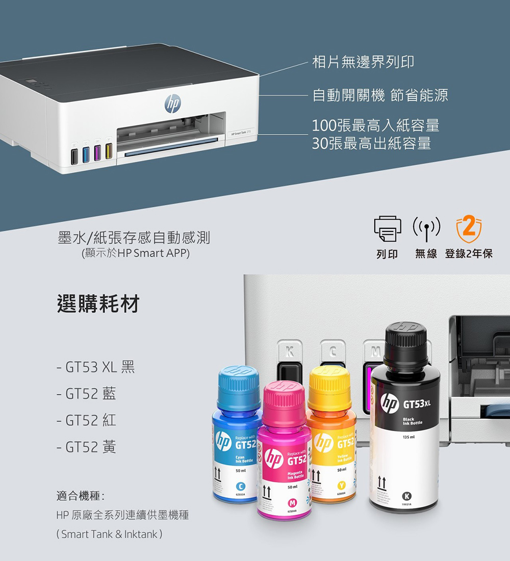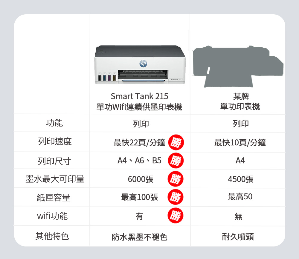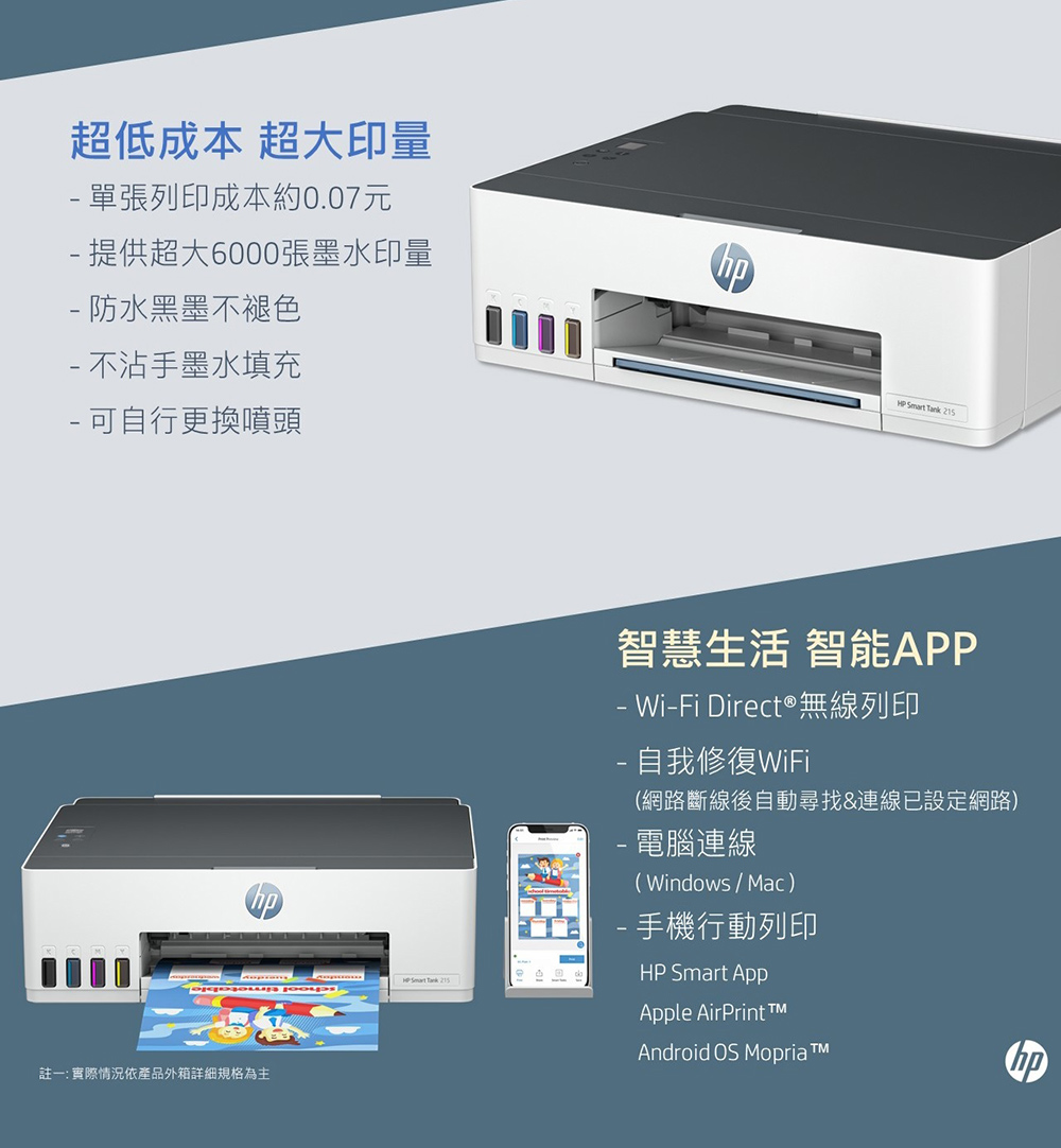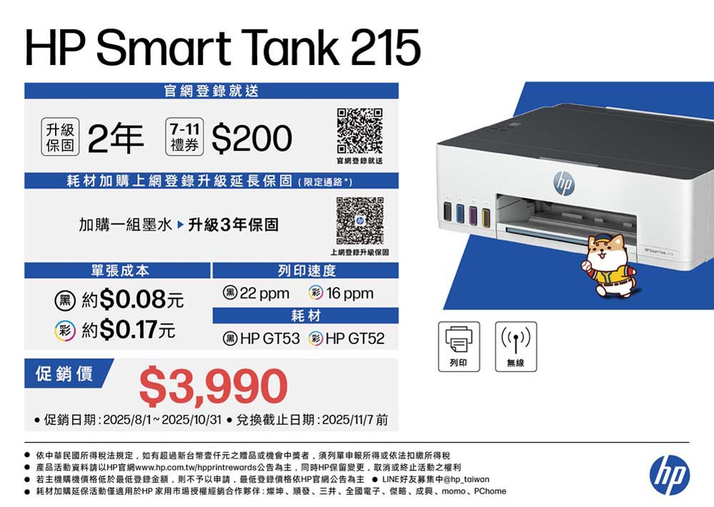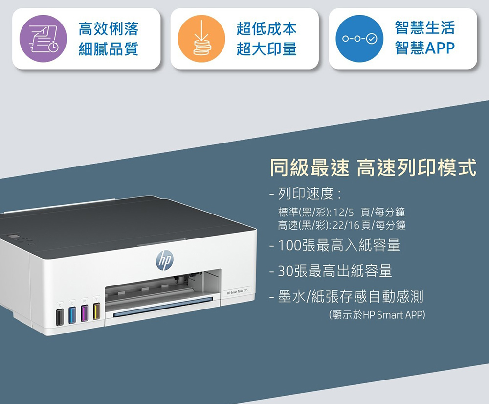 HP Smart Tank 215 相片高速無線連續供墨印表機