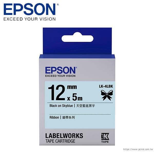 EPSON LK-4LBK C53S654437 標籤帶 (緞帶12mm ) 天空藍黑