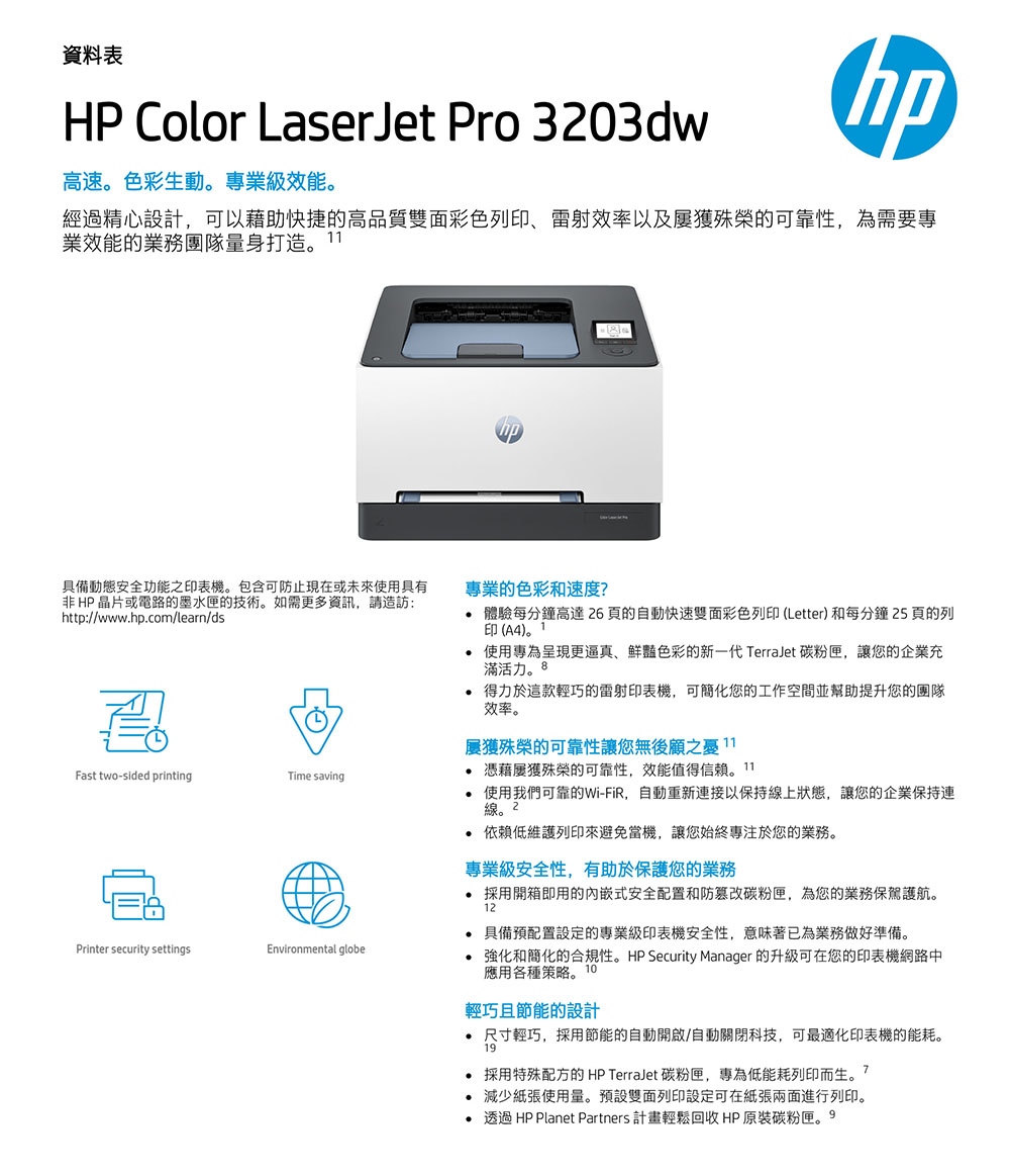 | 型號 | HP Color LaserJet Pro 3203dw(499N4A) |