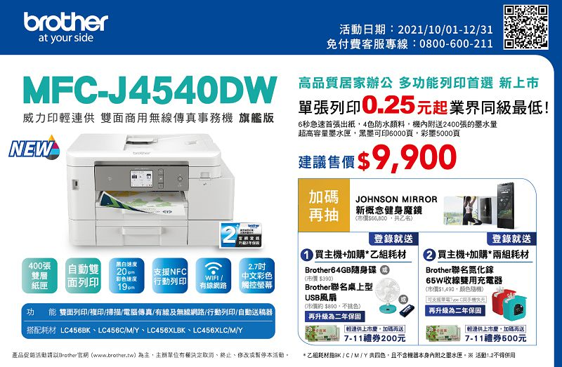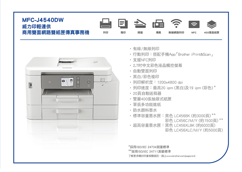 Brother MFC-J4540DW 威力印輕連供 商用雙面網路雙紙匣傳真事務機